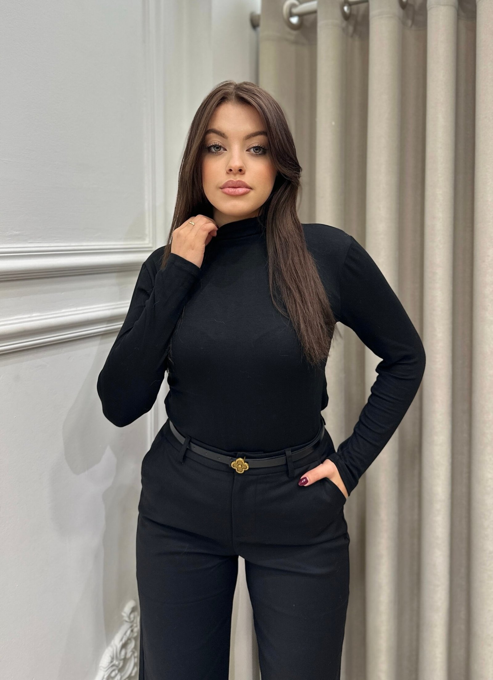 Golf bazik, i thjeshte dhe funksional, nje pjese e domosdoshme ne garderoben tuaj. Me material elastik dhe te bute, pershtatet lehtesisht me trupin duke ofruar rehati gjate gjithe dites. Mund te kombinohet lehtesisht si ne veshje casual ashtu edhe ne look-e elegante.