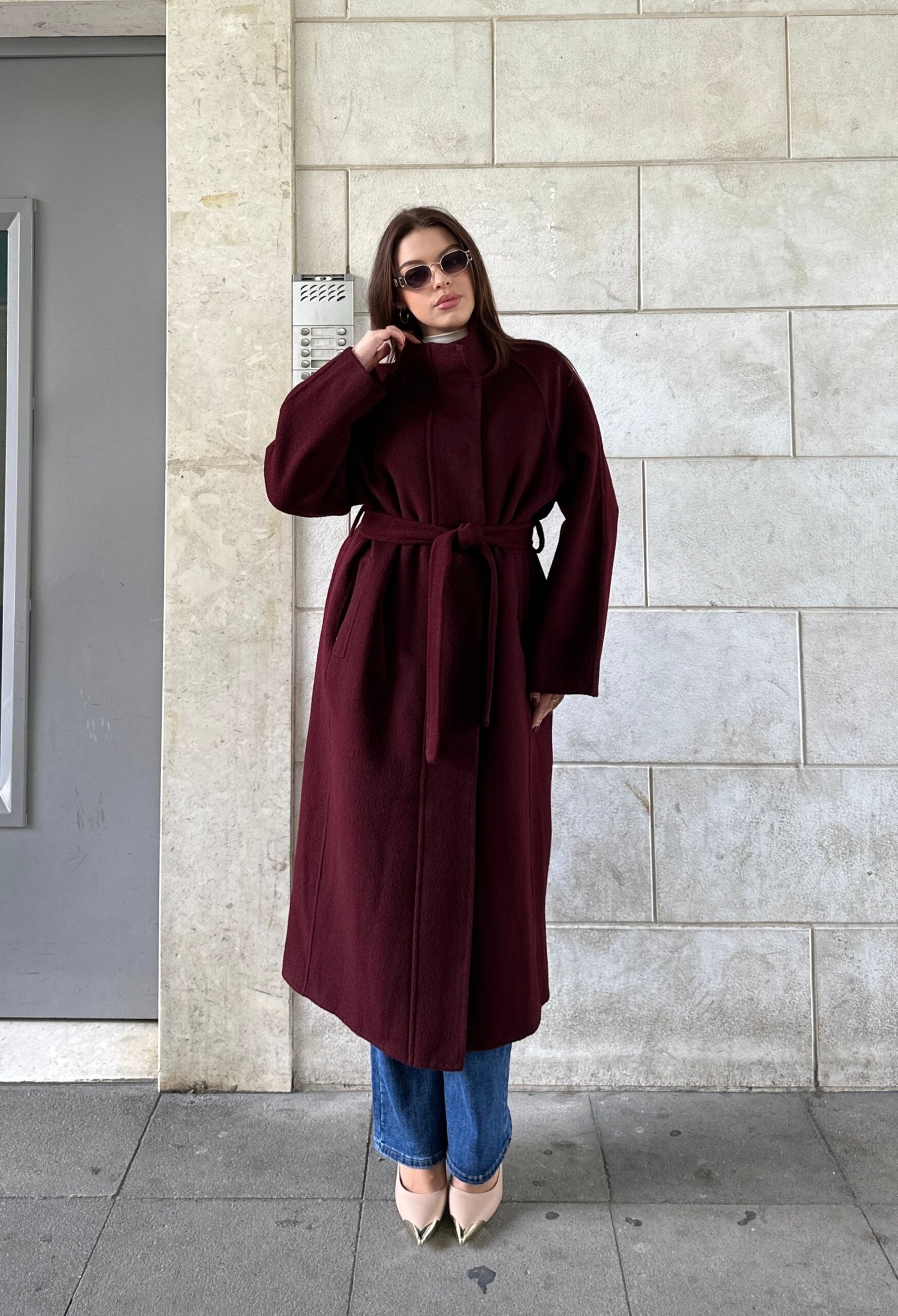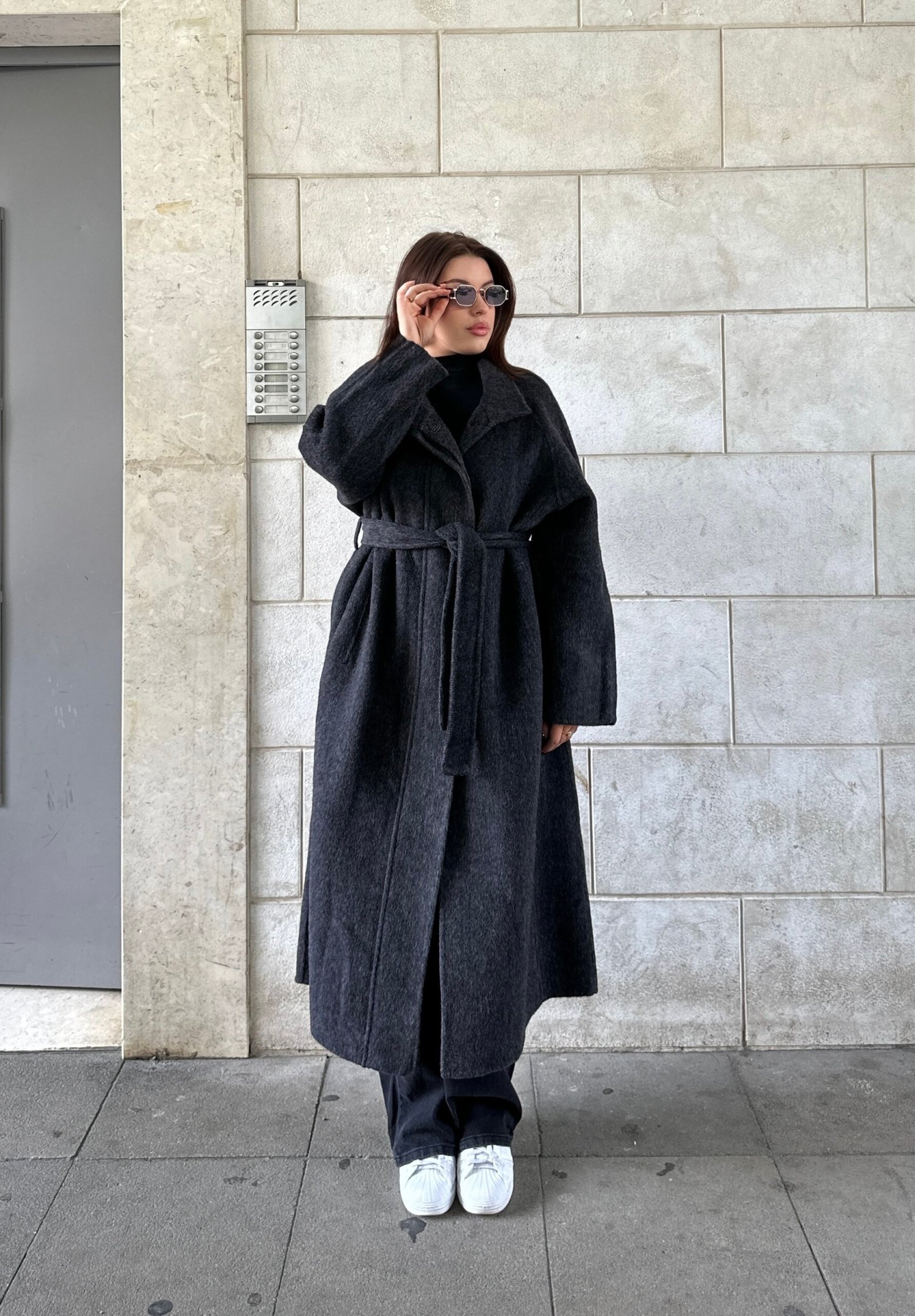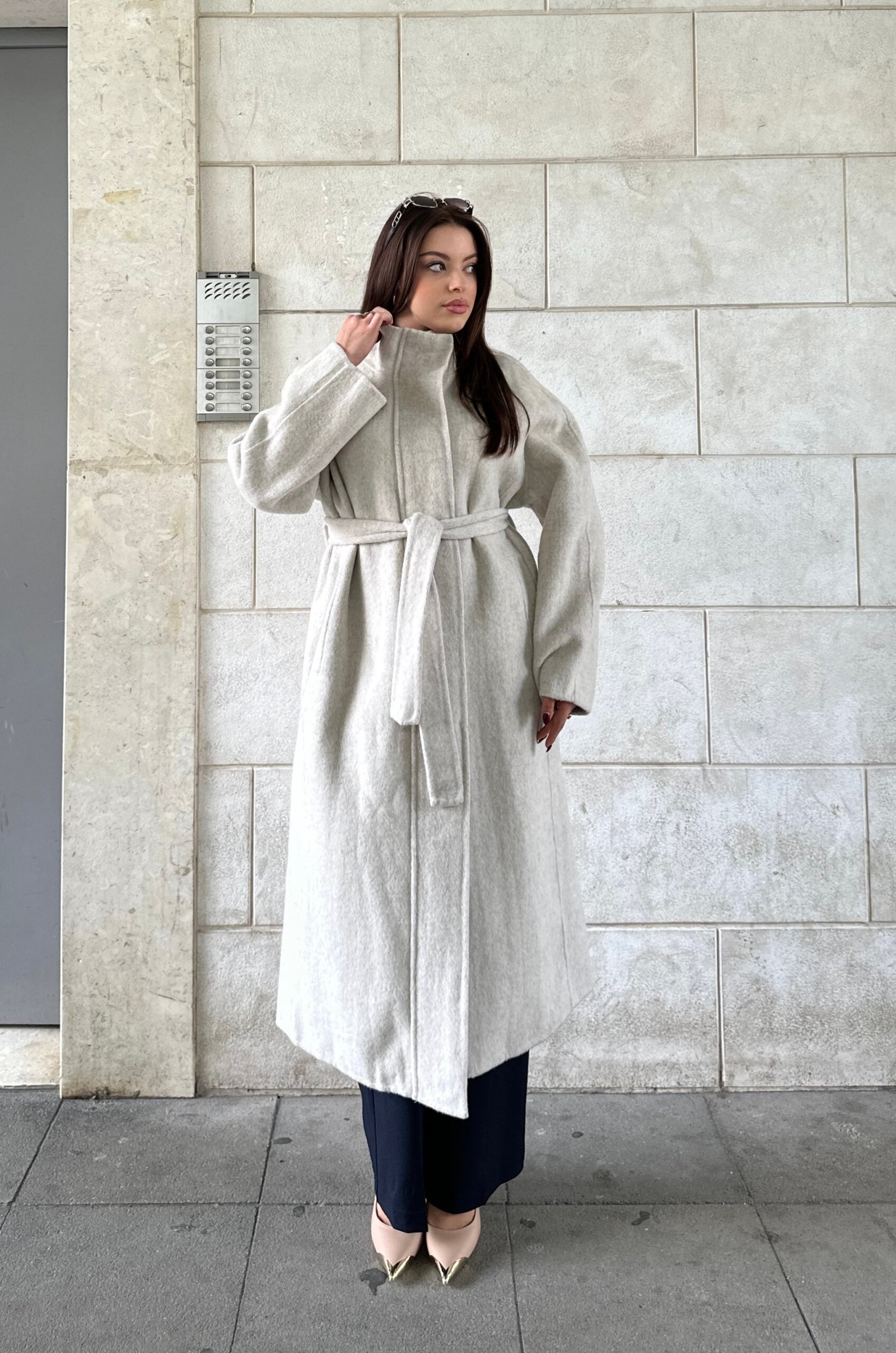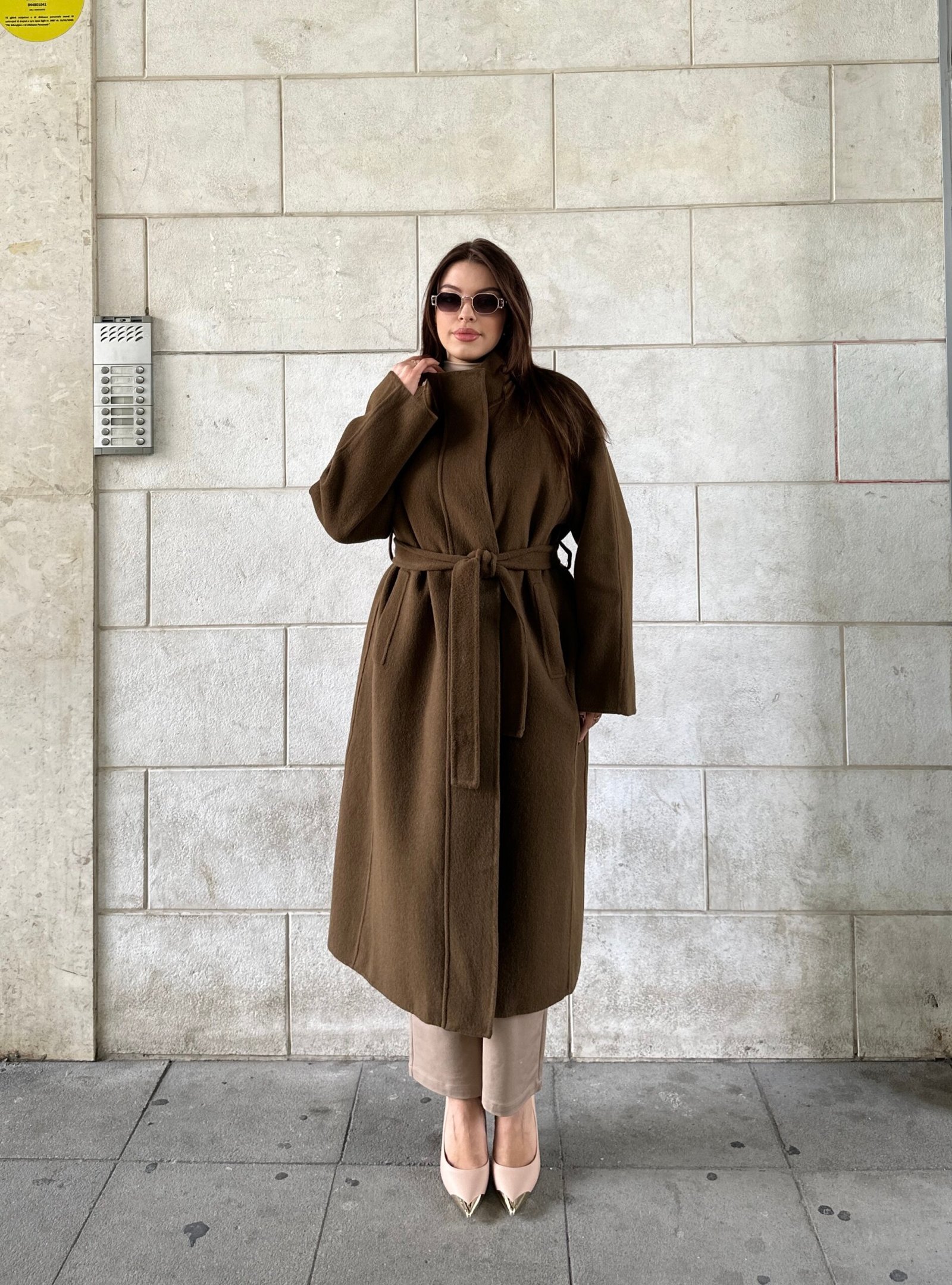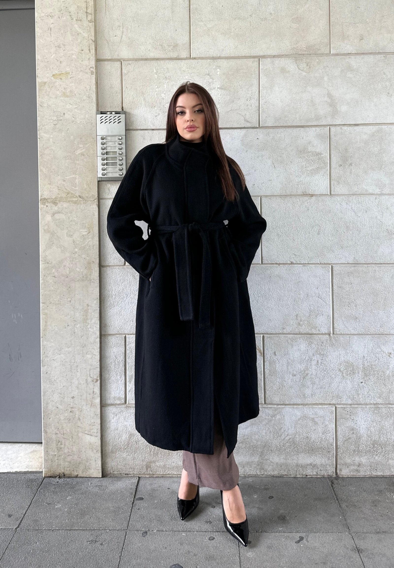 Pallto 100% wool, e punuar me material cilesor qe ofron ngrohtesi dhe rafinim ne cdo veshje. Me dizajn minimalist, prerje te gjate dhe rrip ne bel per nje forme te rregullt dhe femerore. Nje veshje perfekte per stinen e ftohte, duke kombinuar luksin, komoditetin dhe elegancen ne nje model te vetem.
