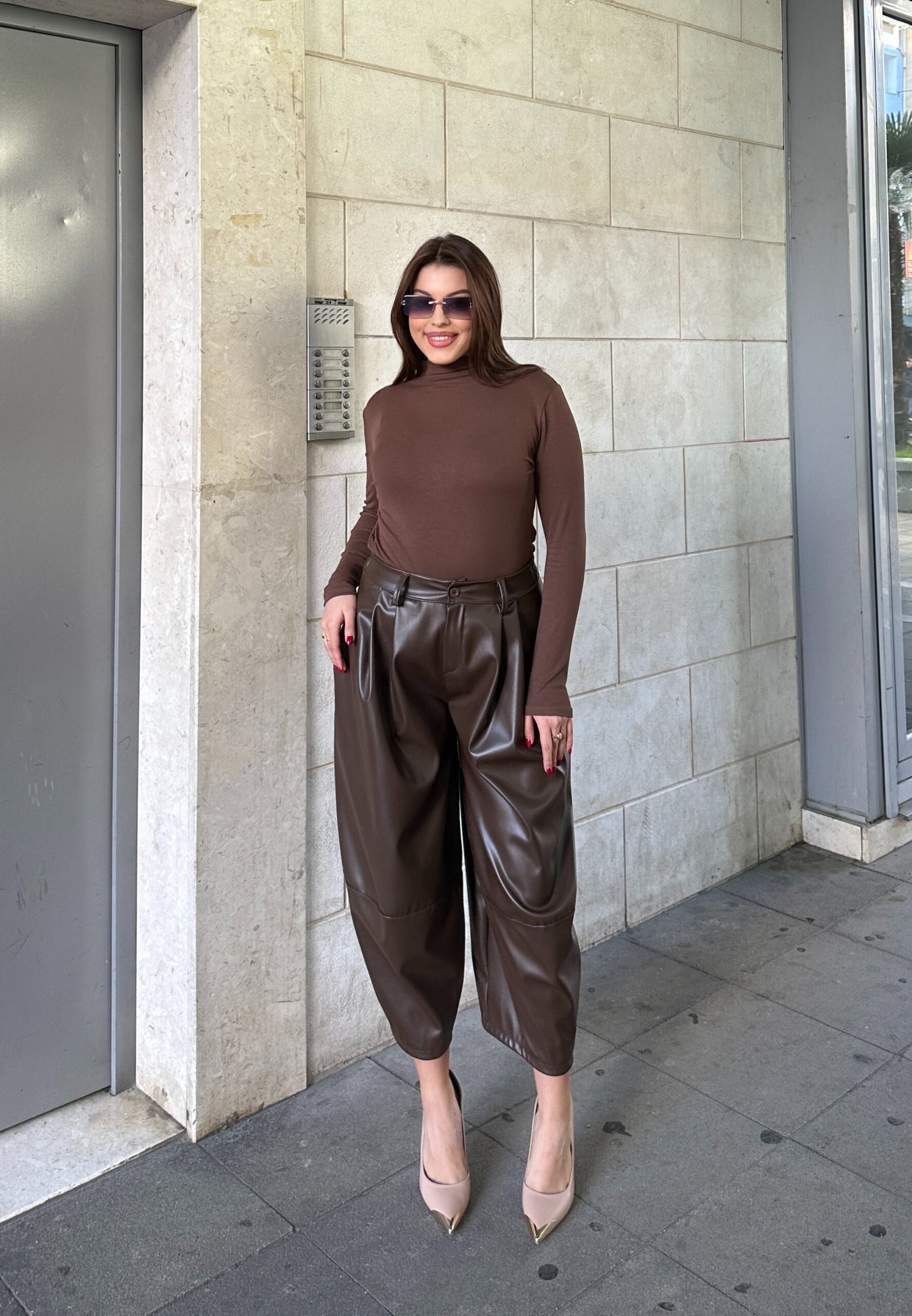 Materiali i lekures se bute i ben perfekte per kombinime elegante ose casual – me bodysuit, golf, kemeisha apo xhaketa.