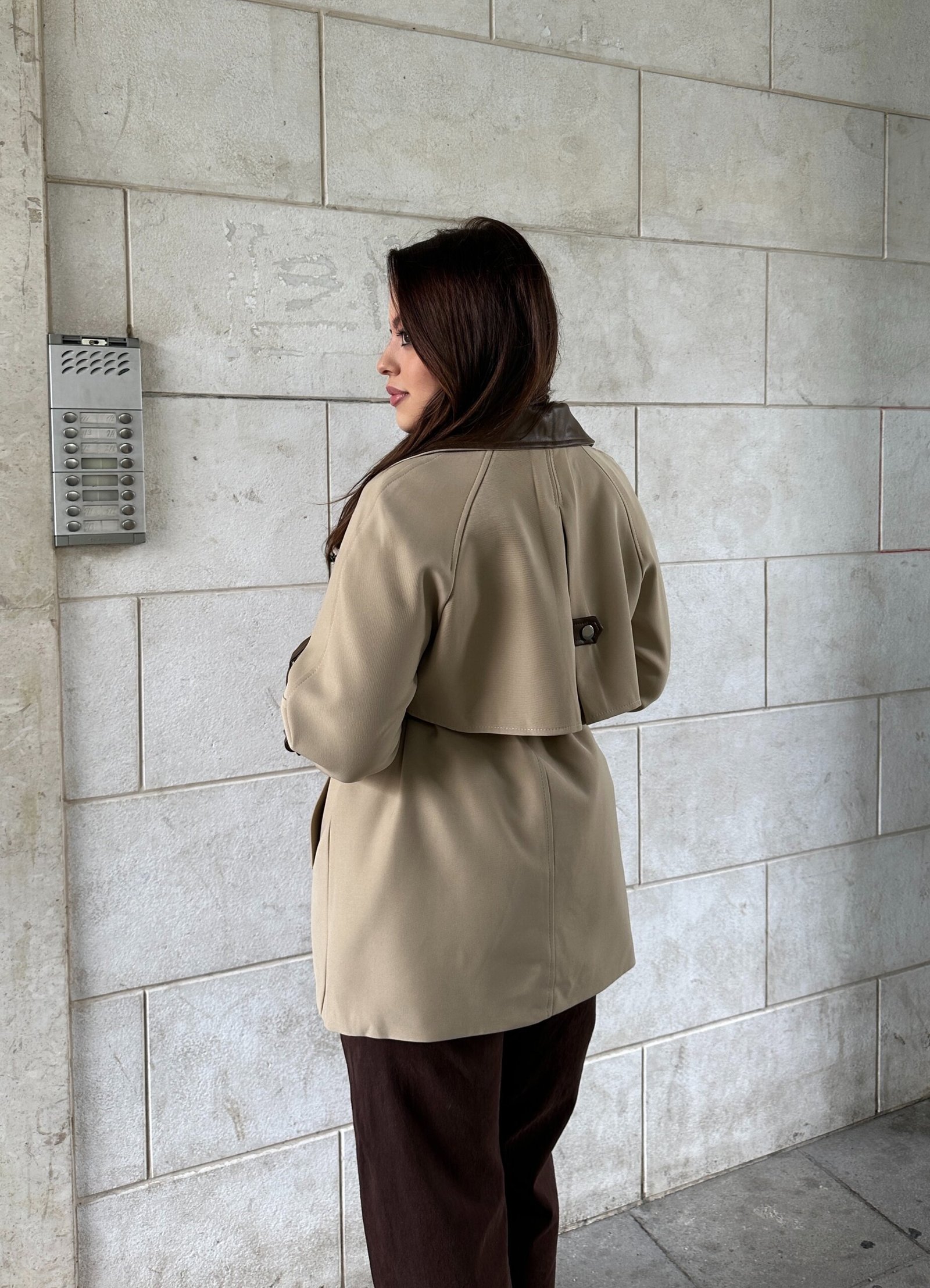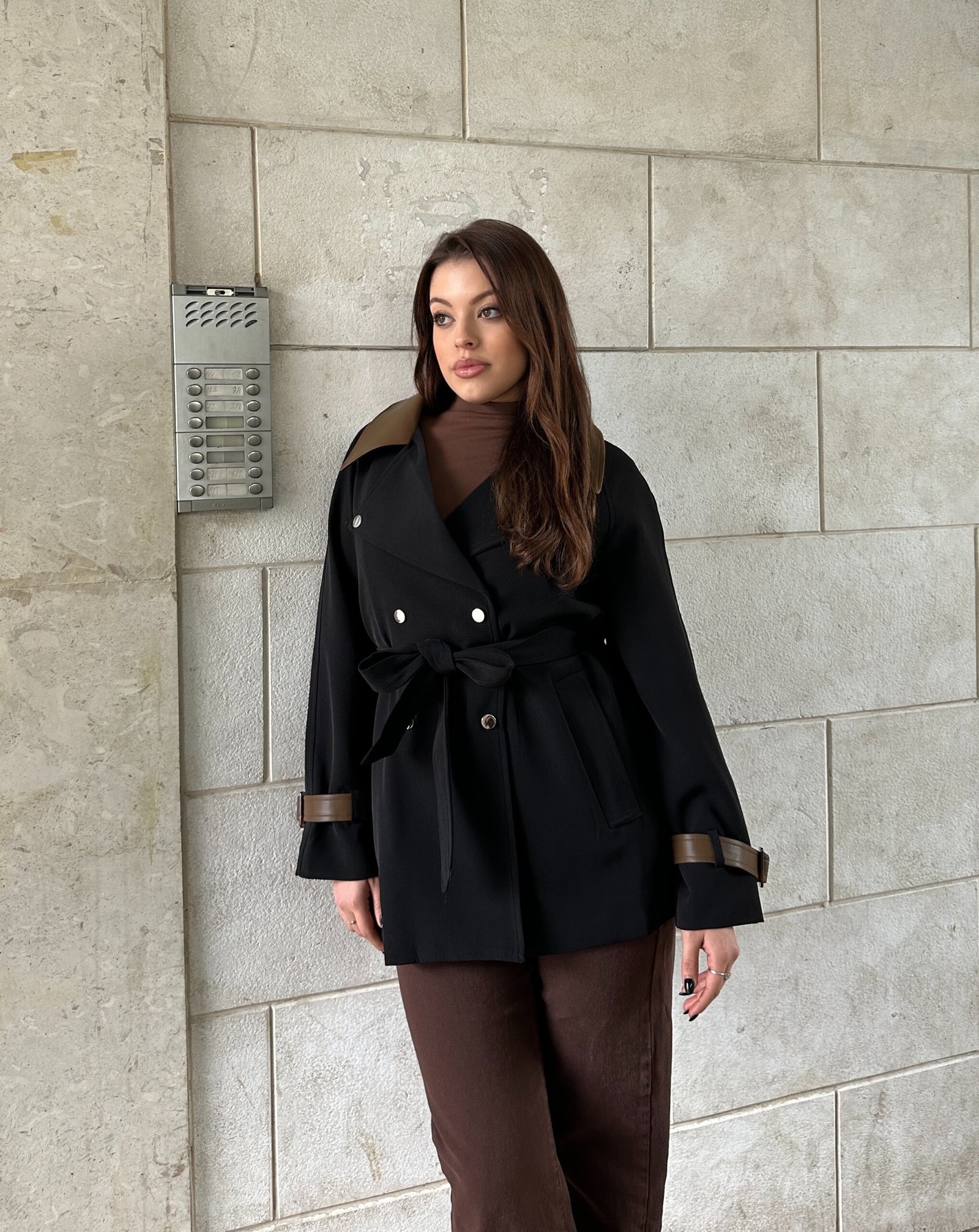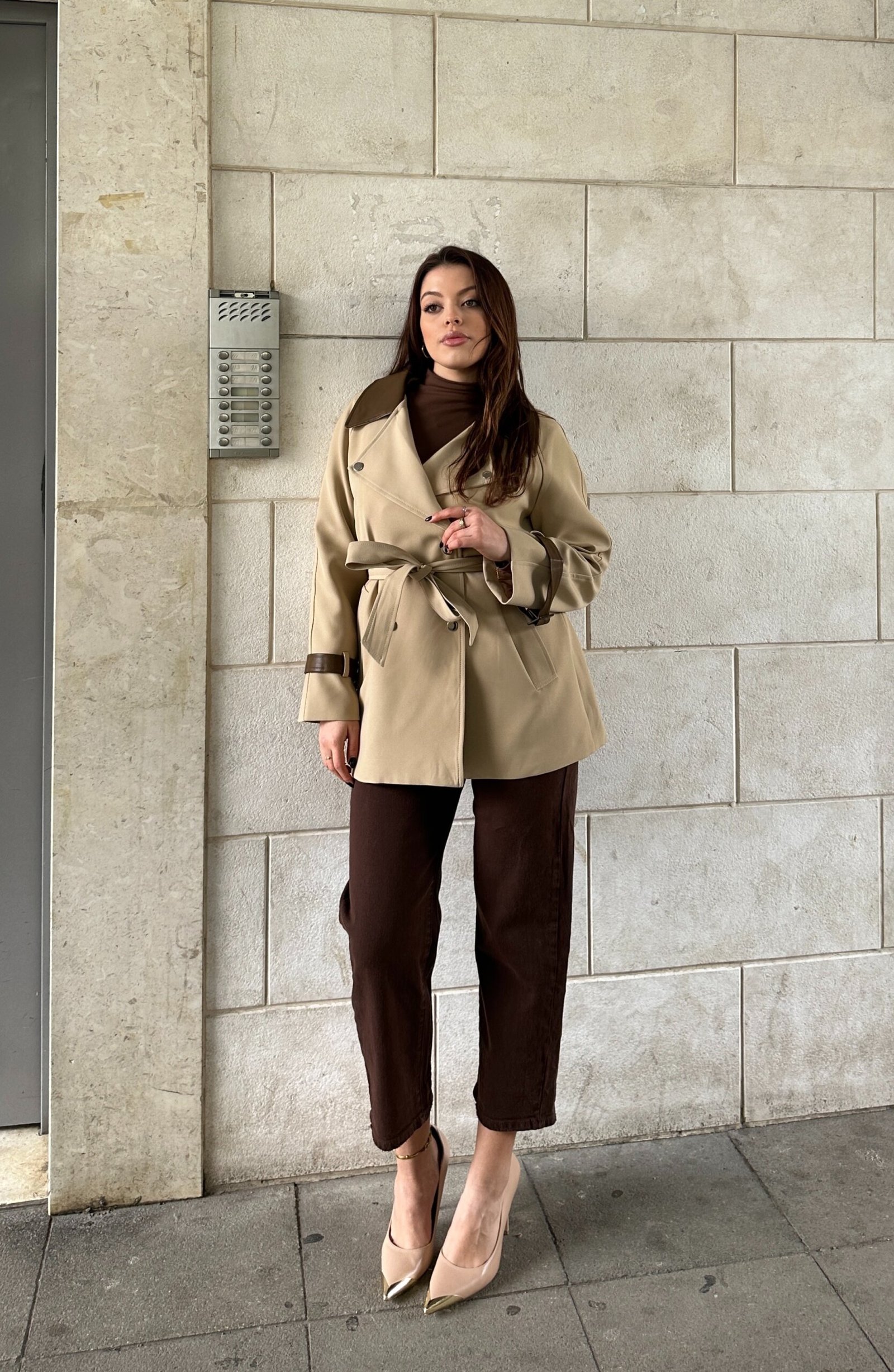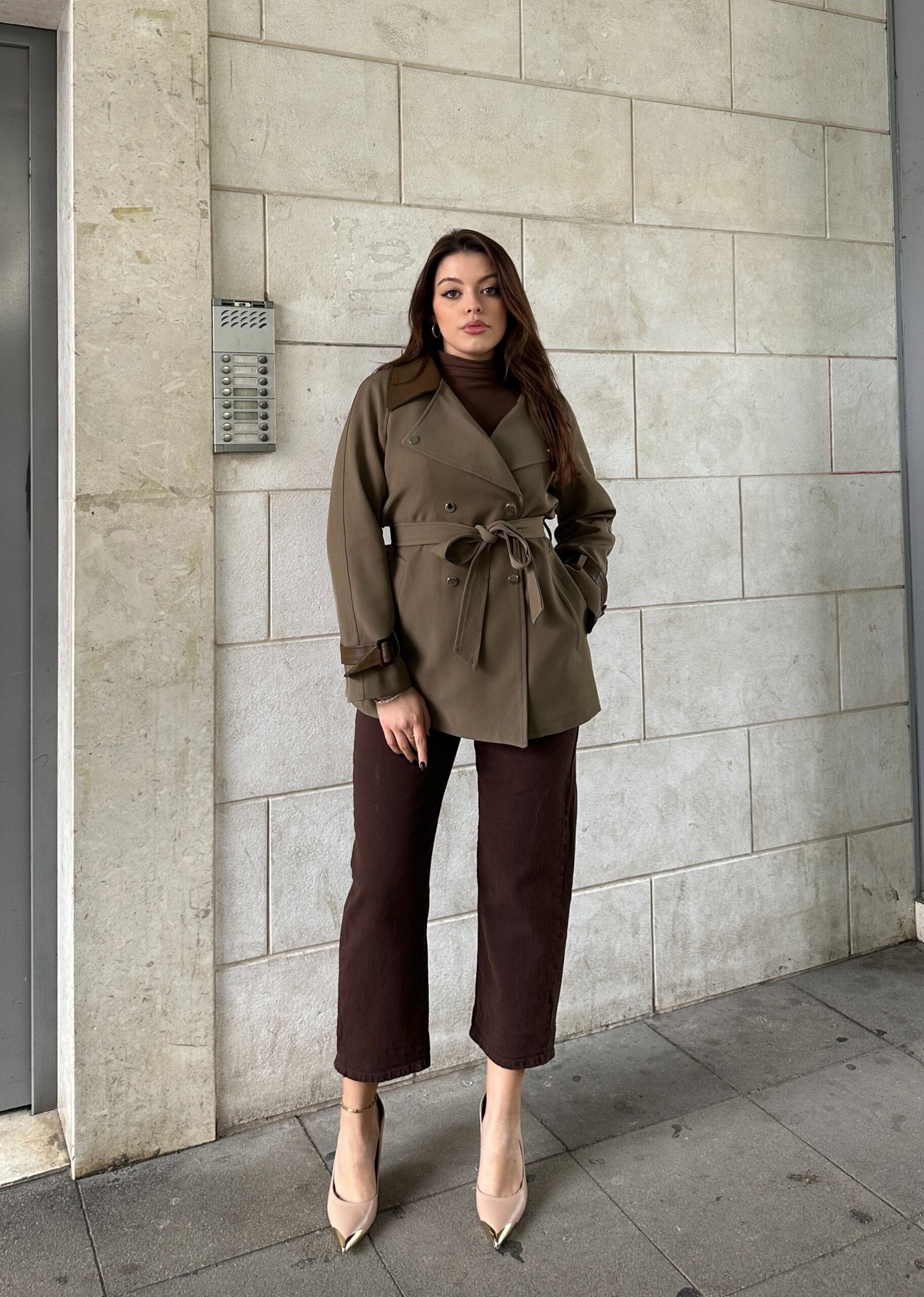 Pardesy me dizajn klasik double breasted dhe rrip ne bel qe thekson silueten. Model me detaje kontrast ne jake dhe ne mansheta qe i japin karakter modern. Ideale per kombinime elegante ose smart casual gjate sezonit te fresket.