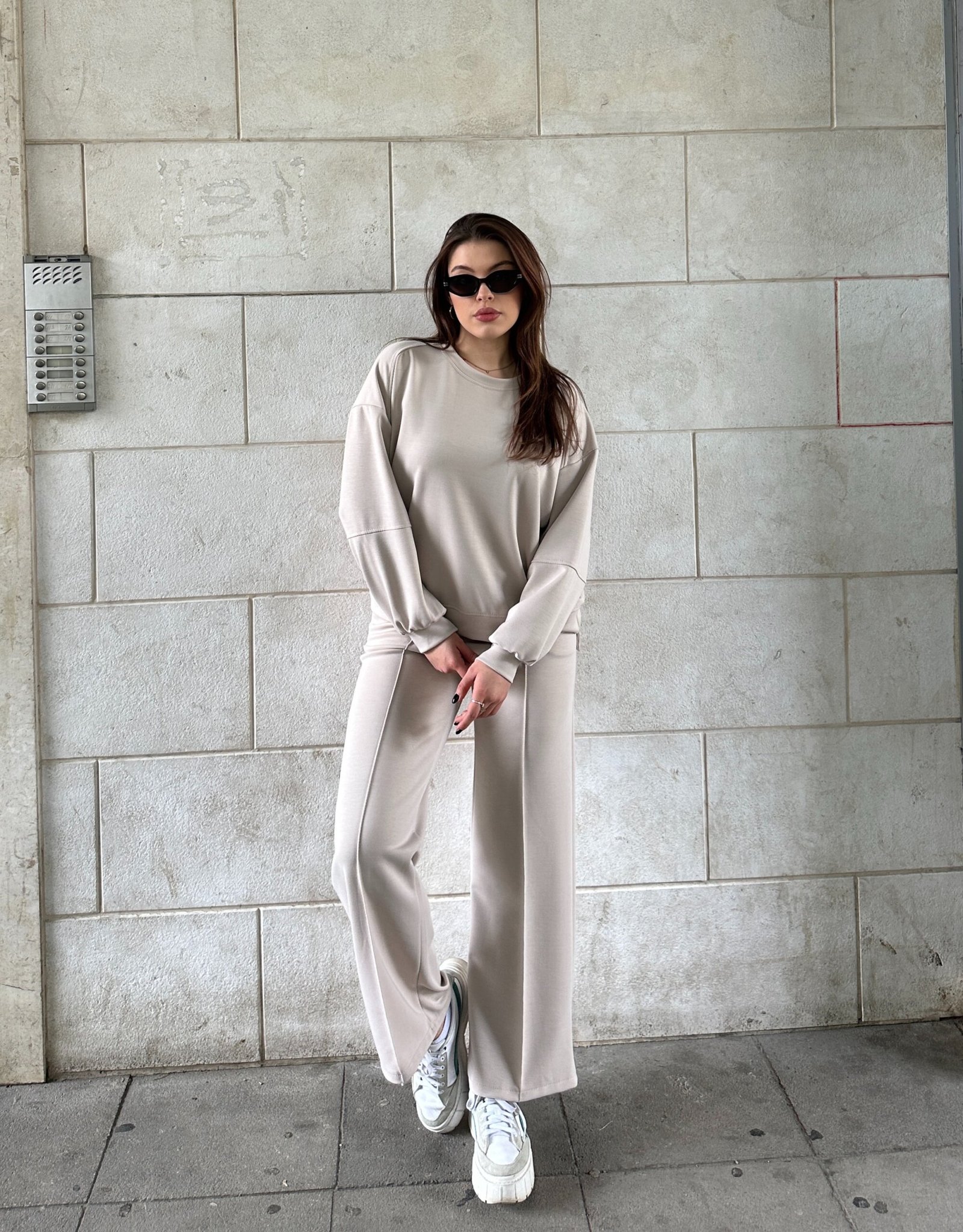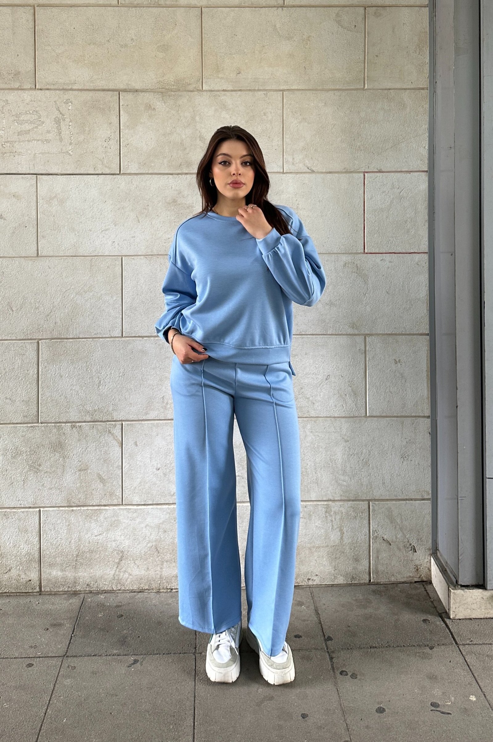 Set sportiv me bluze me prerje te lirshme dhe pantallona me bel elastik dhe prerje wide leg. Model i rehatshem me linja te pastra qe ofron levizshmeri dhe stil modern. Ideal per veshje te perditshme, udhetime apo look casual.