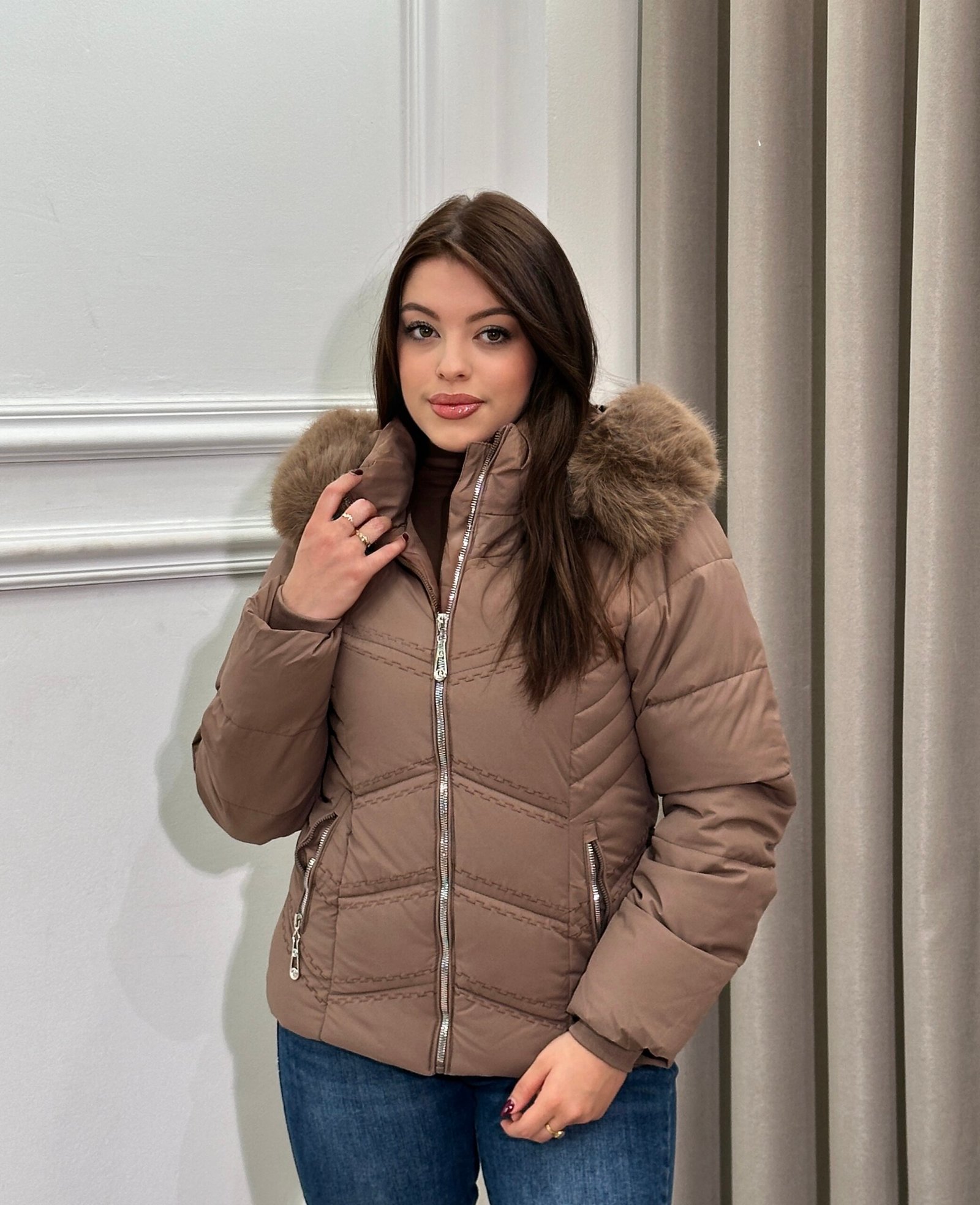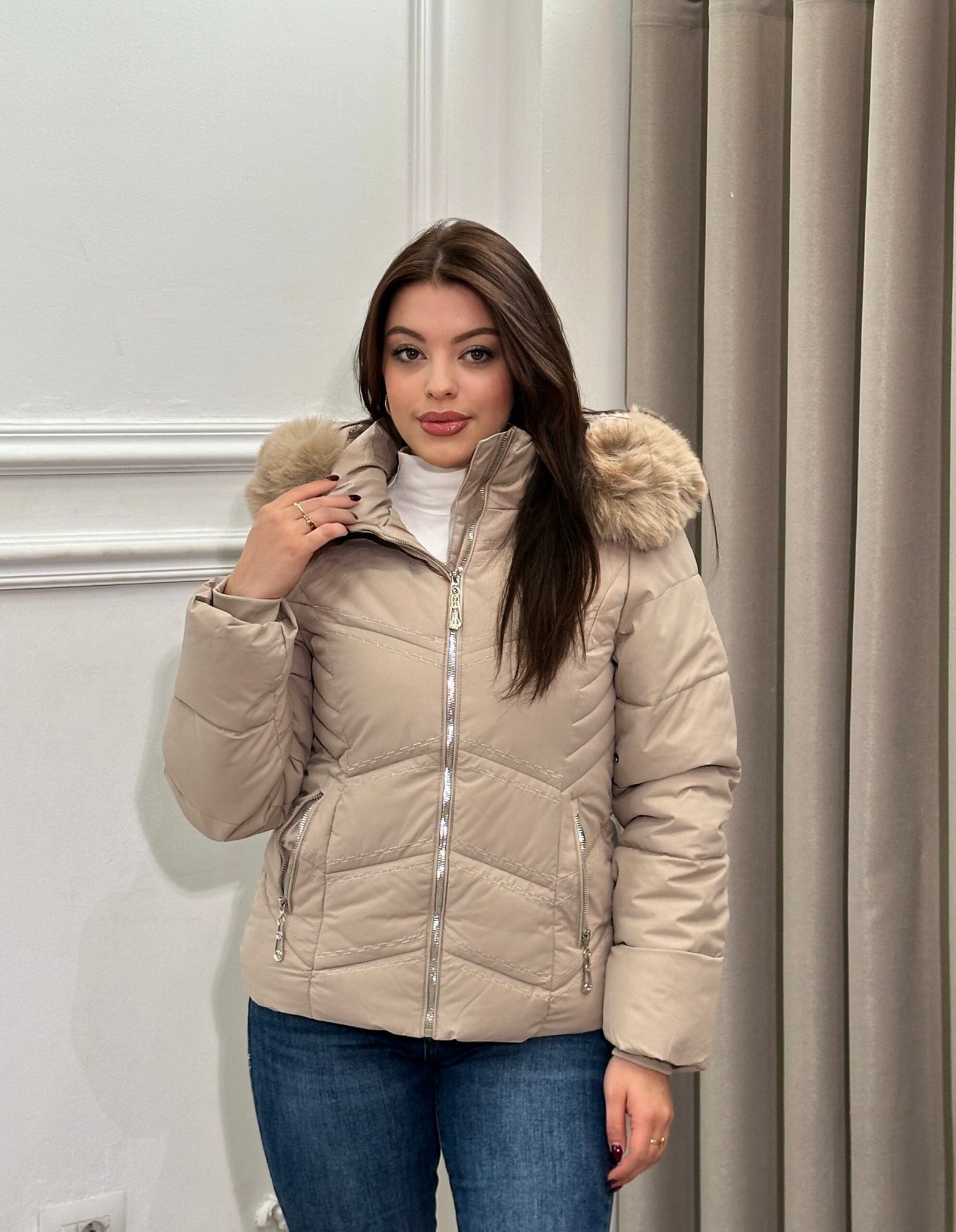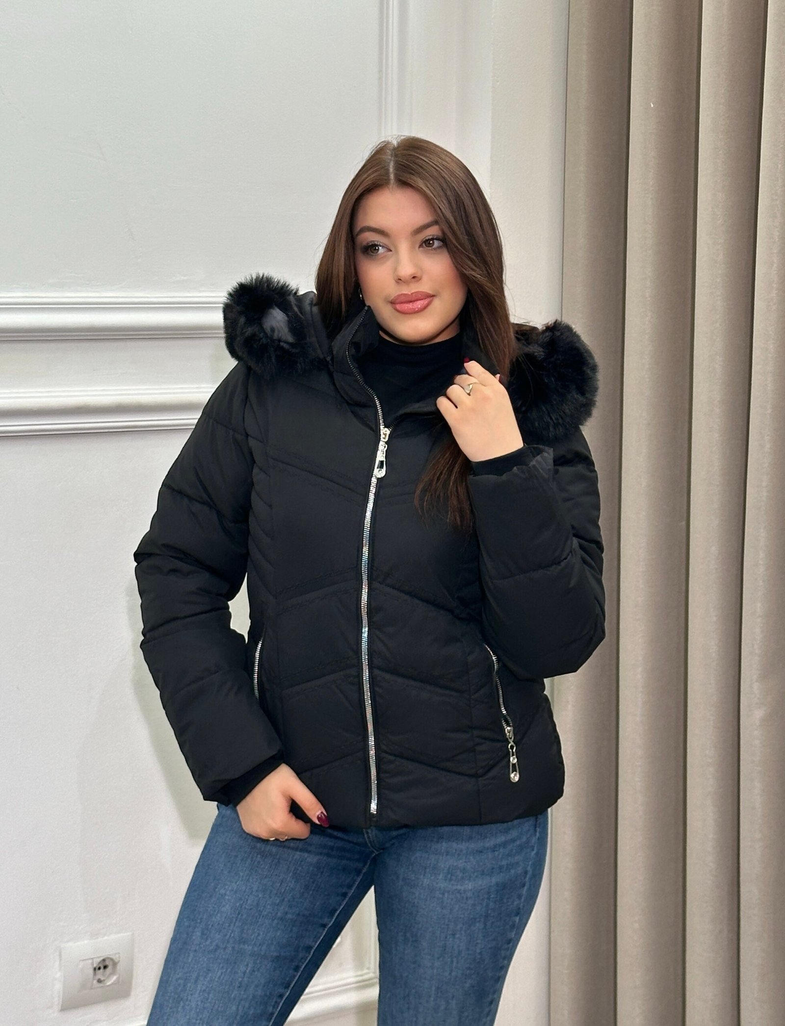 Xhup i fryre elegant dhe funksional, i dizajnuar per te ofruar ngrohtesi ne ditet me te ftohta pa sakrifikuar stilin. Me kapuc te mbuluar me pellush dhe mbyllje me zinxhir metalik, ky model kombinon detajet moderne me nje prerje të pershtatshme per çdo trup. Ideal per veshje te perditshme, duke i dhene pamjes nje prekje luksoze dhe komode njekohesisht.
