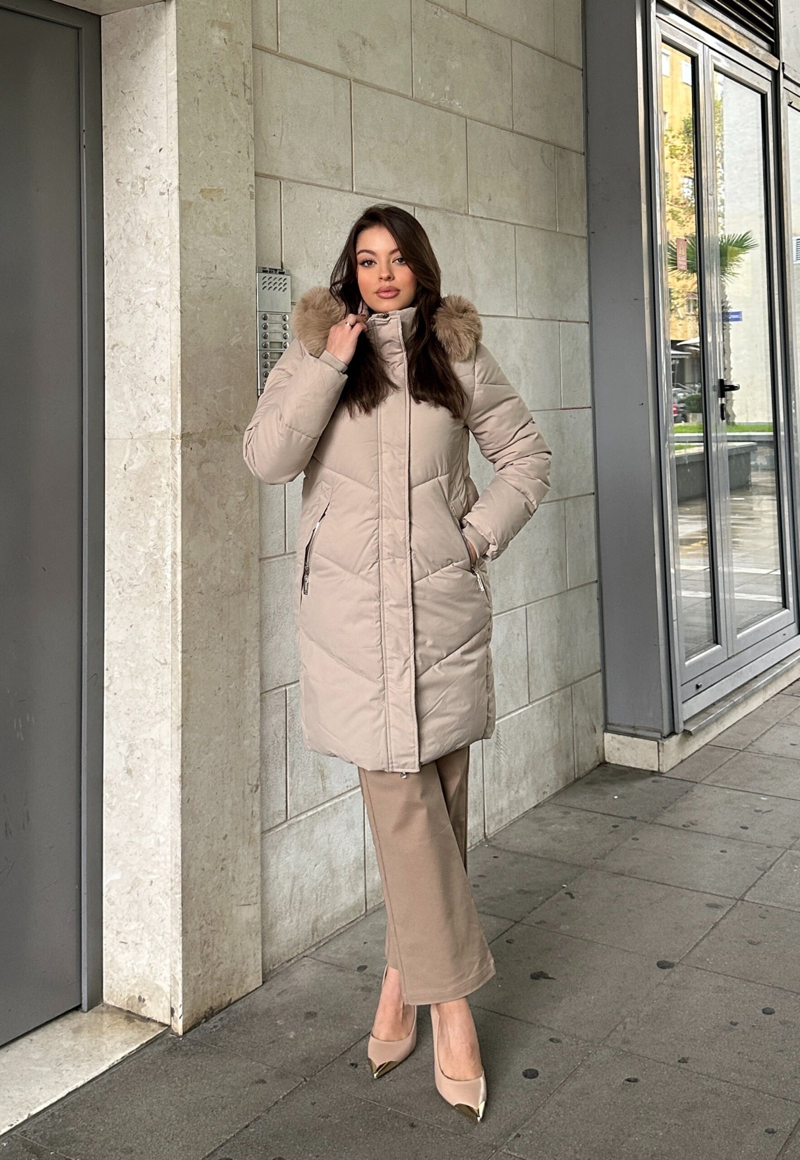 Xhup i ngrohte dhe praktik, perfekt per dite te ftohta. Ka kapuc me push te integruar dhe forme qe thekson belin lehtesisht, duke krijuar balance mes komfortit dhe pamjes se kuruar. Mbyllet me zinxhir dhe ka xhepa funksionale – ideal per perdorim te perditeshem.