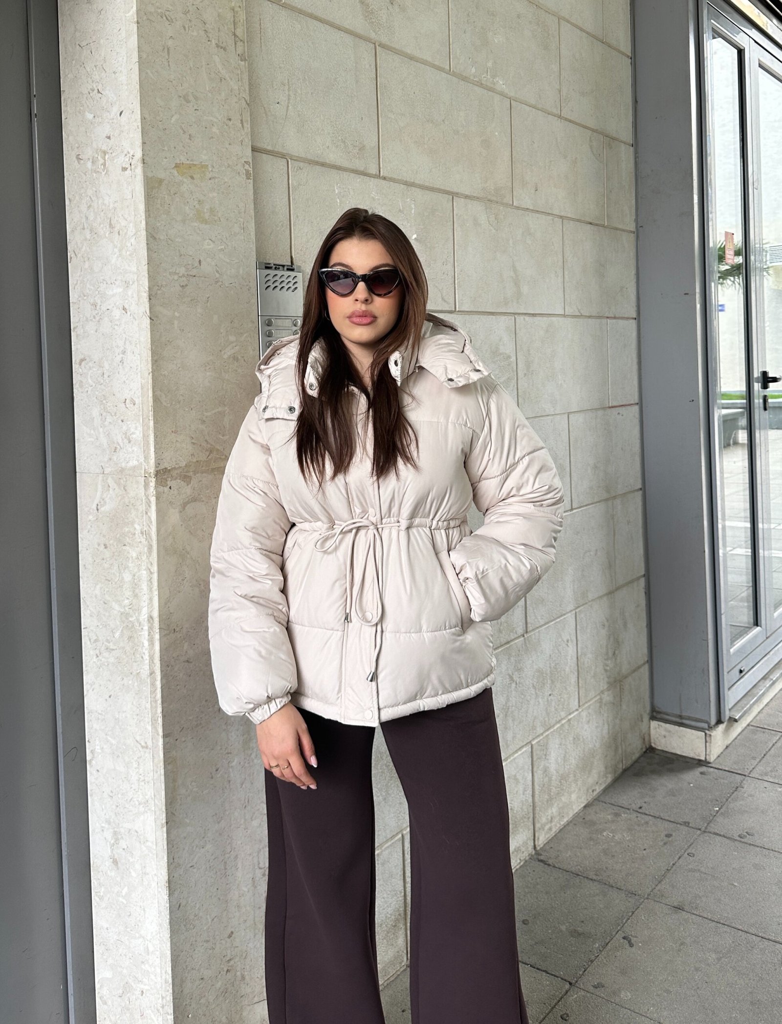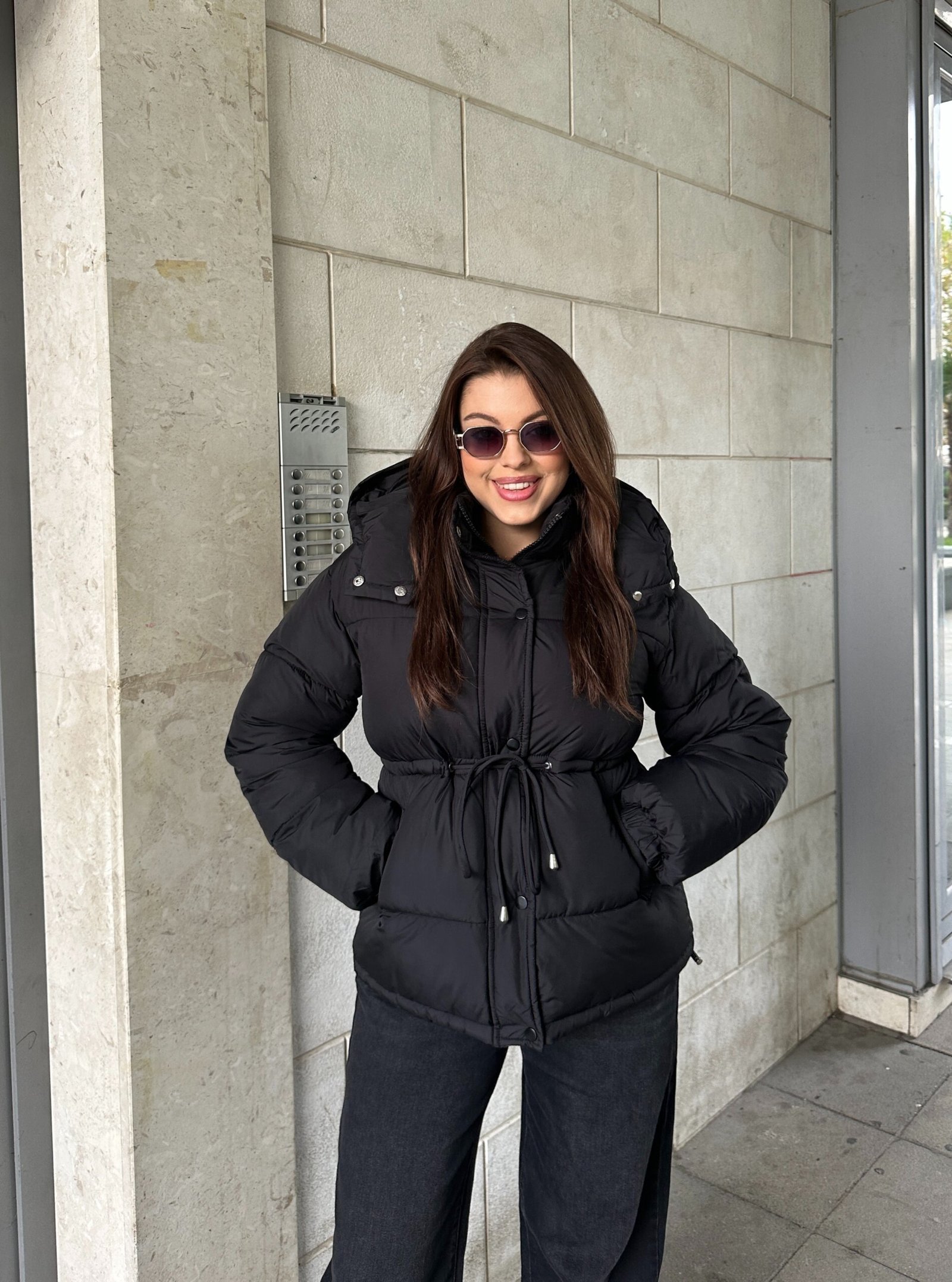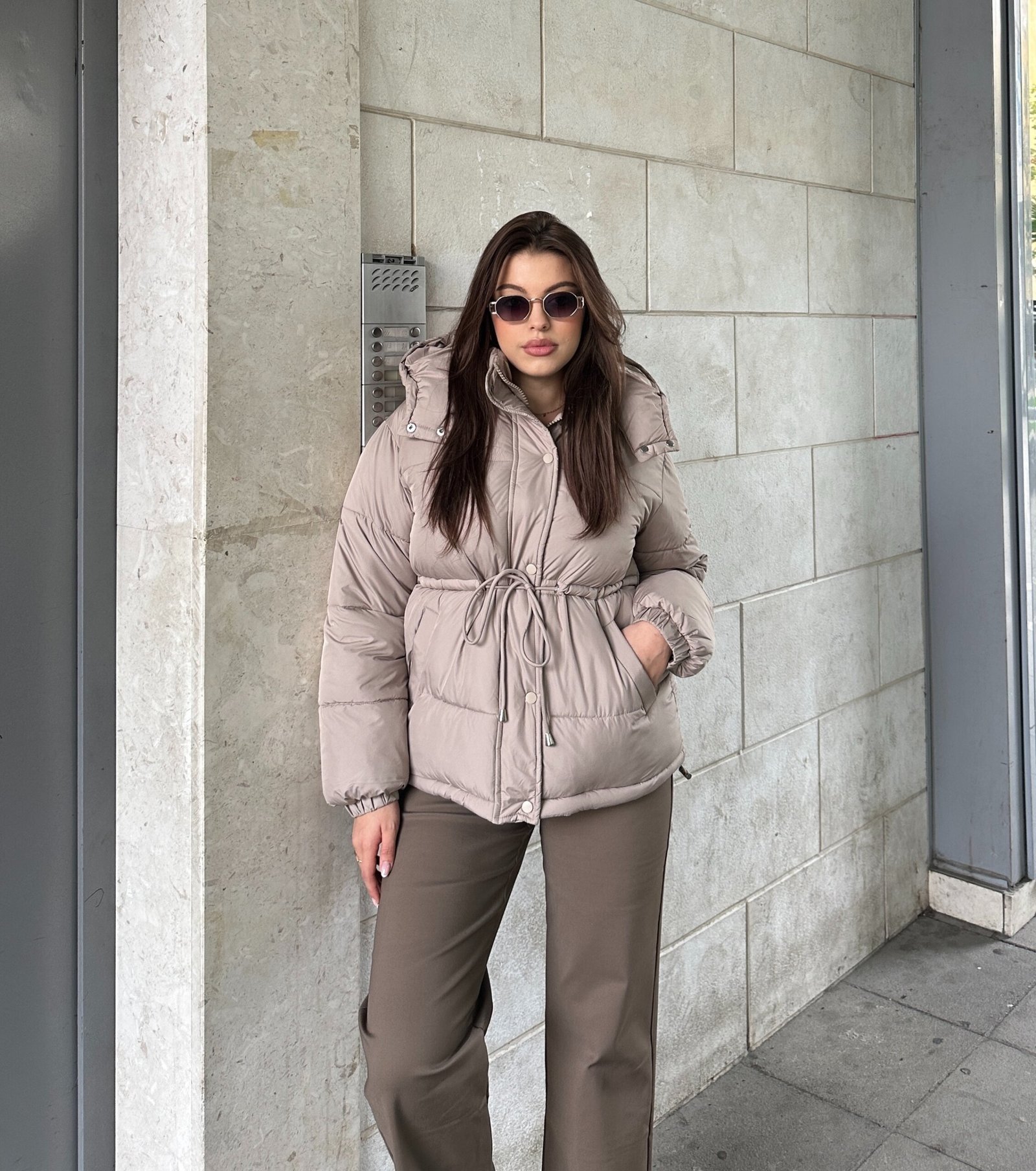Xhup i ngrohte dhe praktik me prerje moderne, perfekt per ditet e ftohta. Ka kapuc funksional dhe rrip ne bel qe lejon rregullimin sipas deshires, duke theksuar silueten. Mbyllet me zinxhir dhe kopsa ne pjesen e perparme dhe permban xhepa anesore per komoditet shtese. Materiali i tij i lehte por i izoluar siguron ngrohtesi dhe rehati gjate gjithe dites.