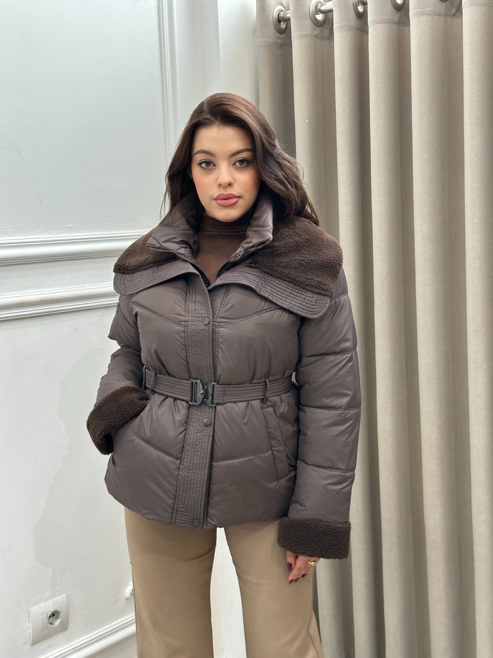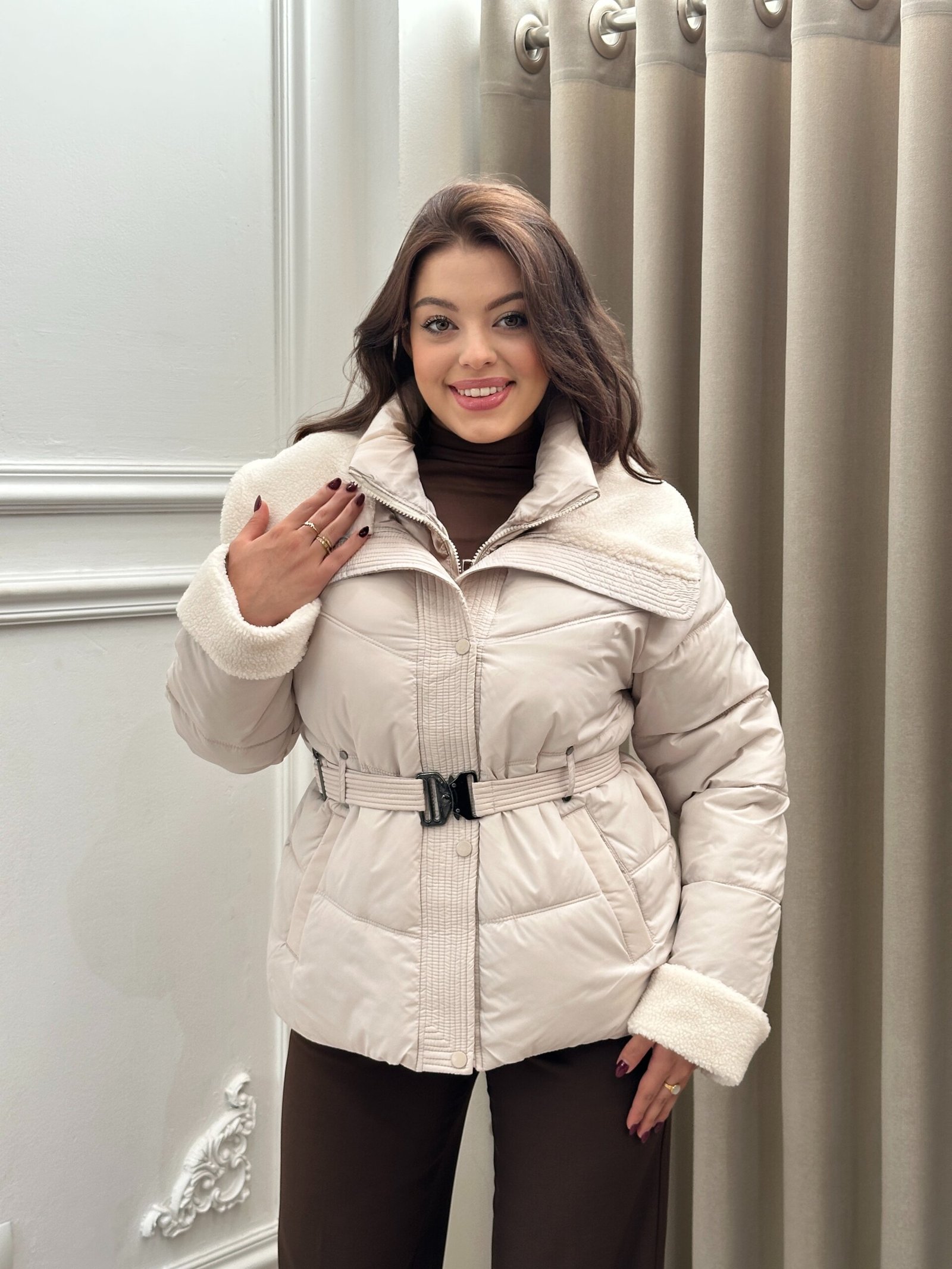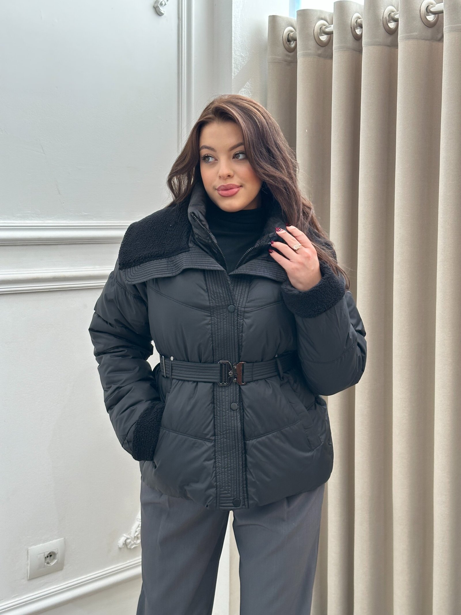 Xhup i rehatshem dhe elegant, i persosur per ditet e ftohta te dimrit. Dizajni me rrip thekson belin, duke krijuar nje siluete femerore dhe moderne. Jaka me pellush shton ngrohtesi dhe finese, ndërsa mbyllja me zinxhir dhe kopsa ofron mbrojtje maksimale nga i ftohti. Kombinohet lehtesisht si per perditshmeri ashtu edhe per veshje me elegante.